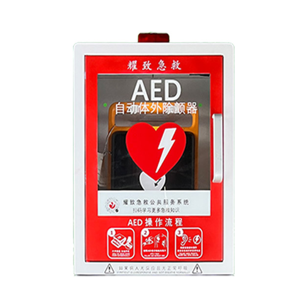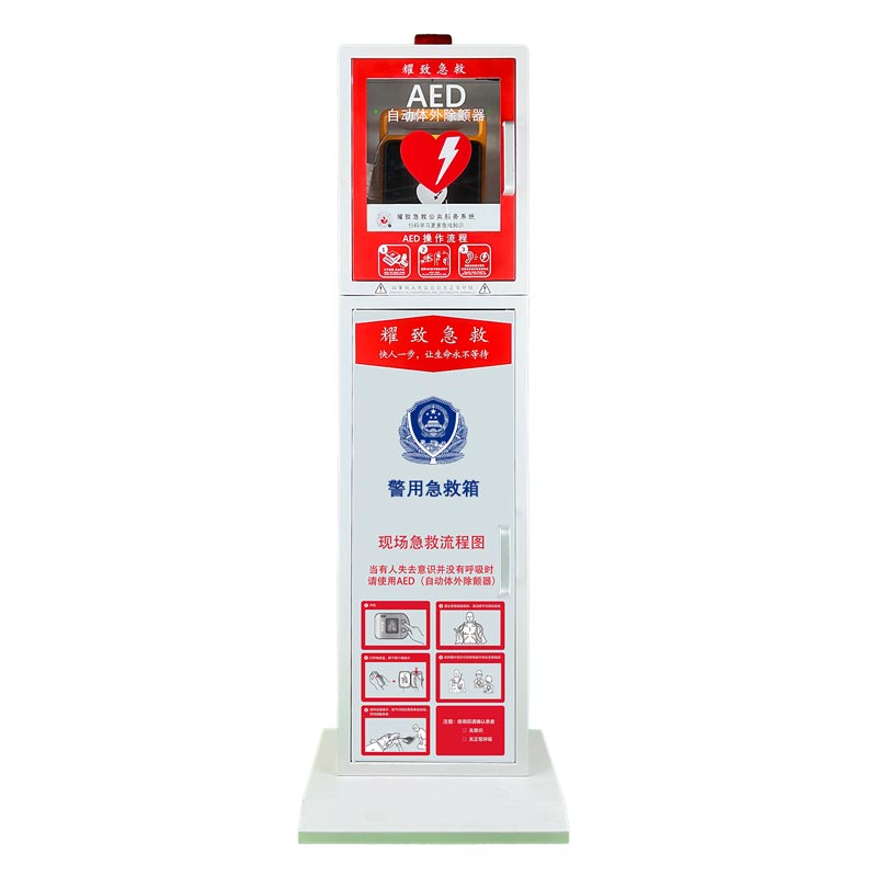 AED箱體:配置三角牌可自行選擇拆裝。大容量?jī)?chǔ)物柜可容納消防器材或急救包等。